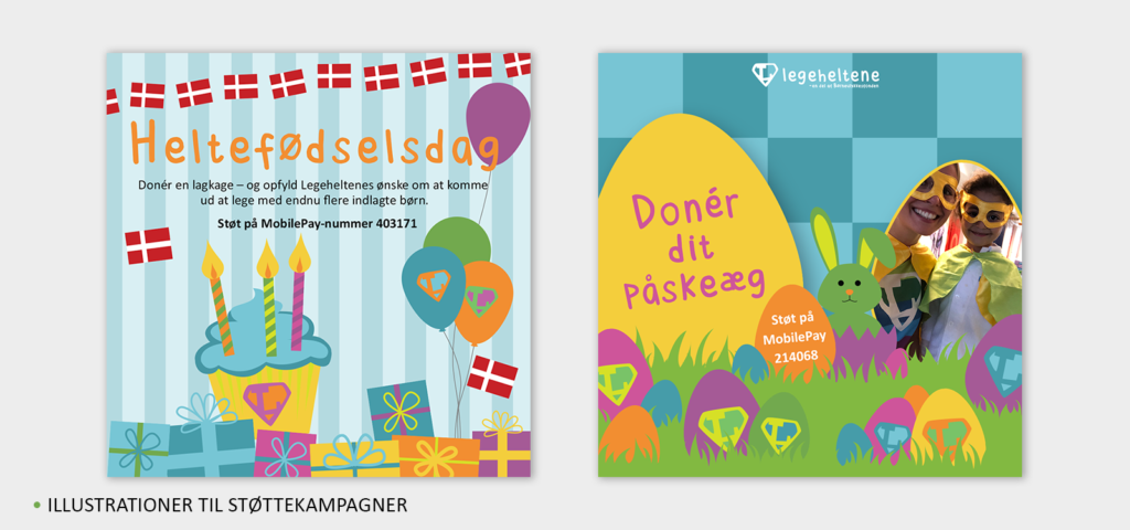 Udarbejdelse af grafisk materiale til initiativet Legeheltene, som aktiverer indlagte børn på de danske hospitaler.